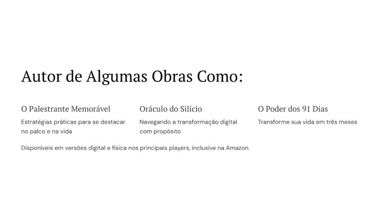 Sua missão de transformar vidas e negócios. através de palestras dinâmicas e de alto impacto, ele inspira pessoas e equipes a superarem desafios, desbloquearem seu potencial e alcançarem o sucesso.